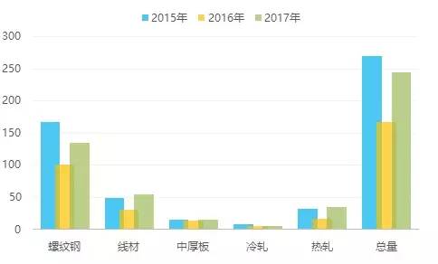 從近三年春節(jié)前后庫(kù)存增幅的絕對(duì)值對(duì)比來看(見圖2),今年市場(chǎng)的庫(kù)存總量增幅雖然明顯高于2016年,但仍小于2015年,占庫(kù)存總量近5成的螺紋鋼增幅小于2015年是主要原因。除去螺紋鋼外,線材、熱軋與中厚板的增幅均已超過2015年,可見2016年的春節(jié)已經(jīng)成為近幾年市場(chǎng)熊牛轉(zhuǎn)換的分水嶺,增加的原因既有補(bǔ)庫(kù)周期中的主動(dòng)增庫(kù)存,也有出口萎縮所導(dǎo)致的被動(dòng)增庫(kù)存。