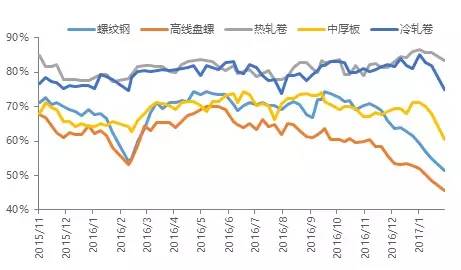 圖4 五大品種產(chǎn)能利用率
